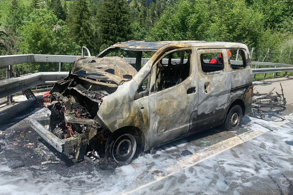 Am frühen Sonntagnachmittag ist auf der Autostrasse A13 in Zillis ein Kleintransporter in Brand geraten. Es wurden keine Person verletzt.