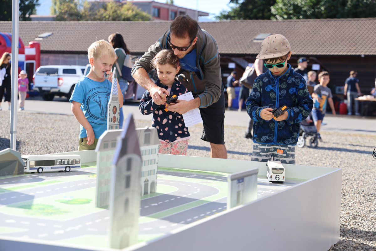 Die Kinder konnten mit einen Parcours mit einem ferngesteuerten ZVB-Bus absolvieren. (Bildquelle: Zuger Polizei)